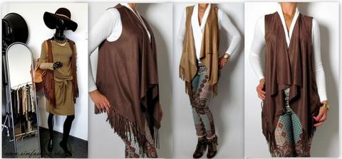 Tenká vestička so strapcami.Vhodná na jar,krásne oživí outfit.Material: imitácia brúsenej kože.Bledá a tmavá,velk.UNI,cena 16,90 eur viac na našej stránke www.simfashion.sk