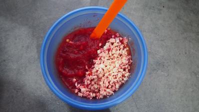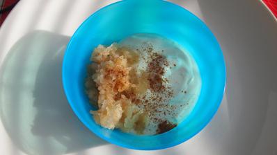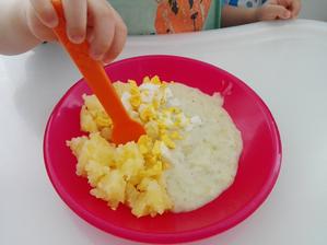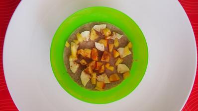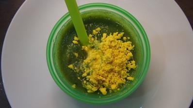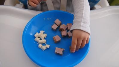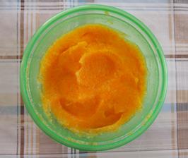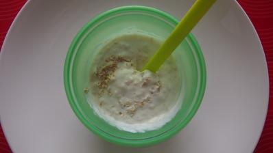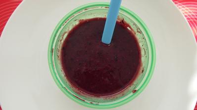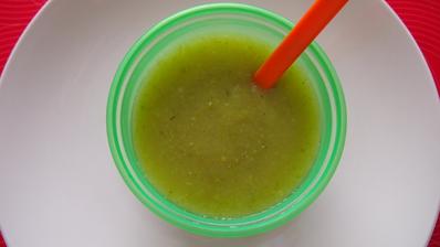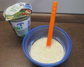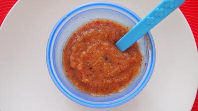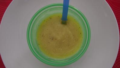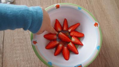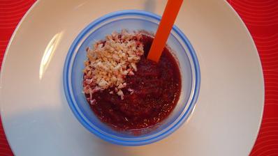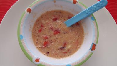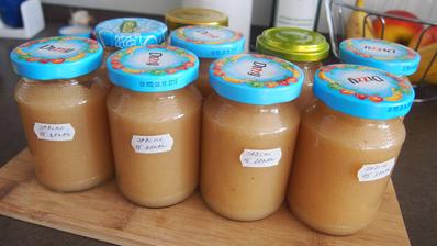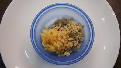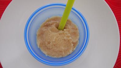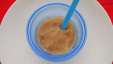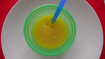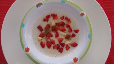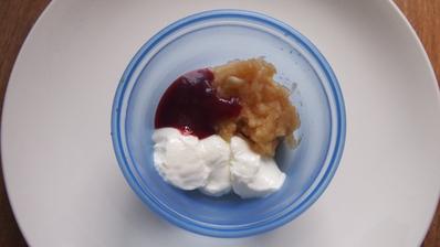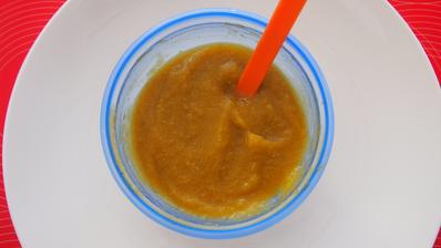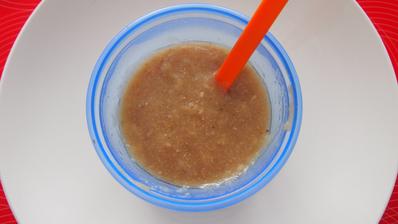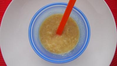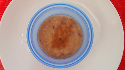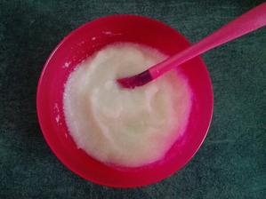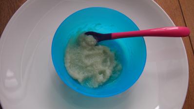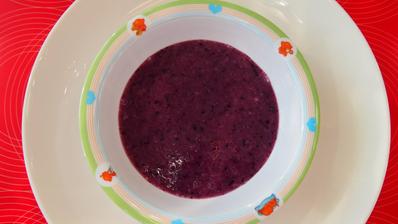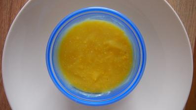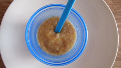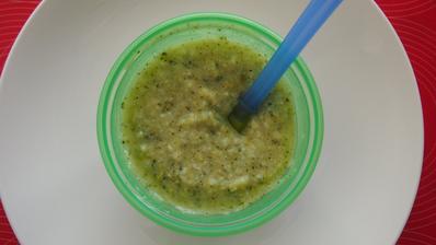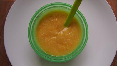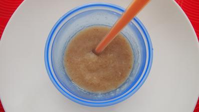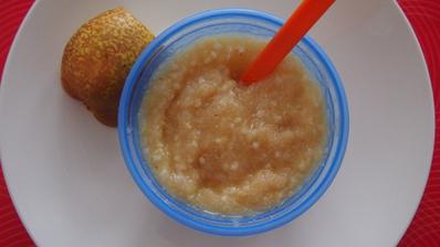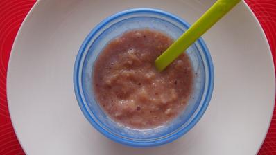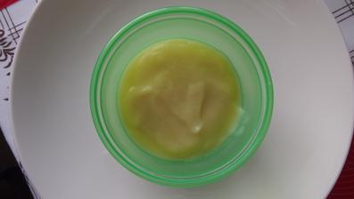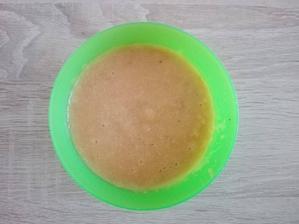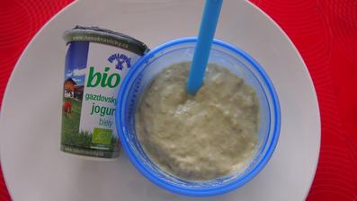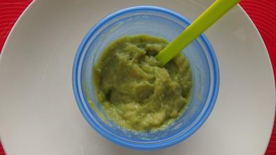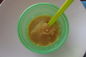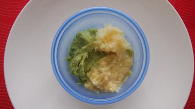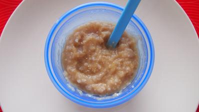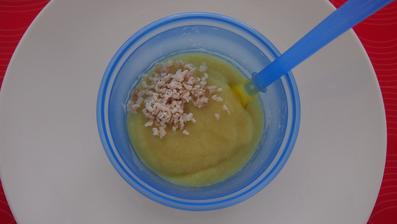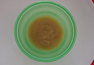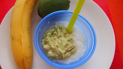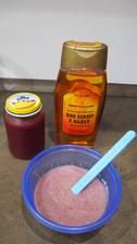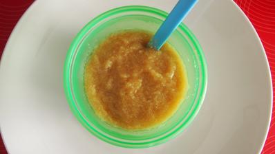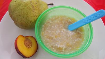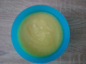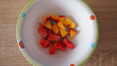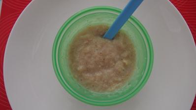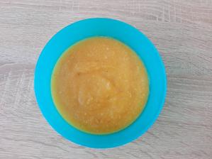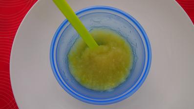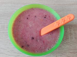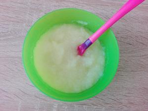 Ovocie najskôr jablko postrúhané na plastovom strúhadle a podusené v dojčenskej vode. Tak sme mali marhuľu, hrušku, banán, slivku, avokádo, mirabelku, čučoriedky...