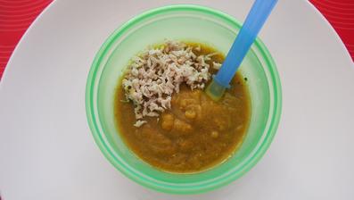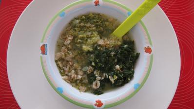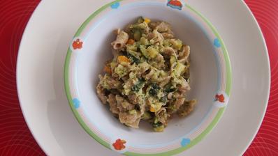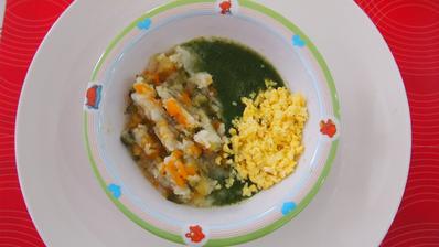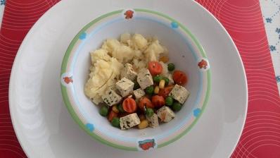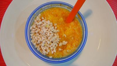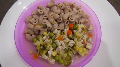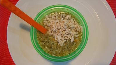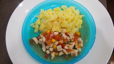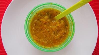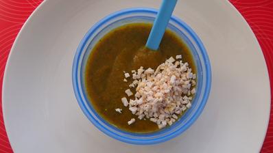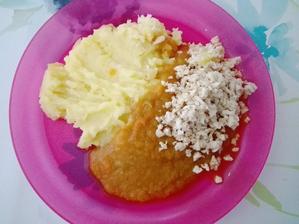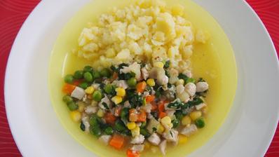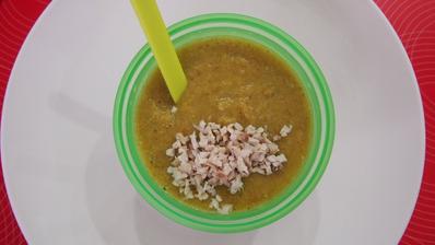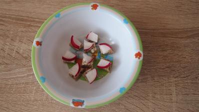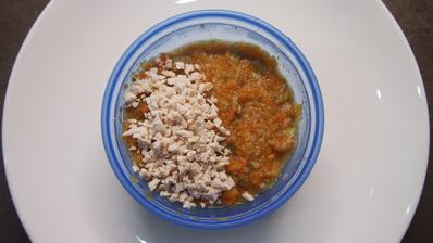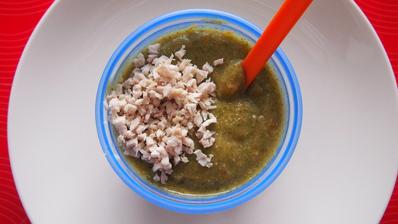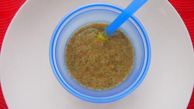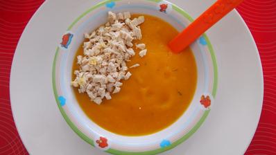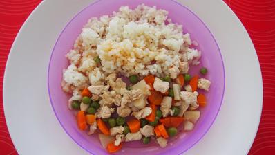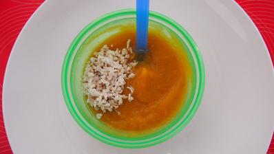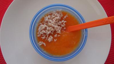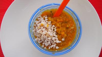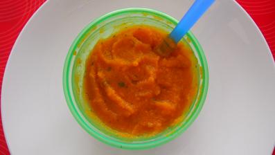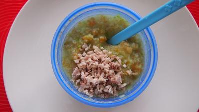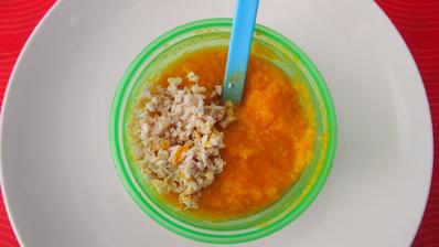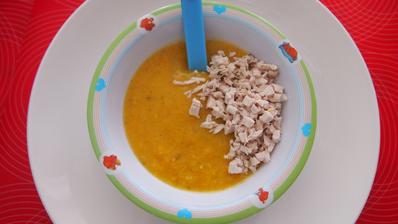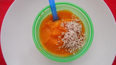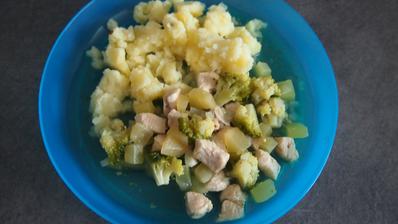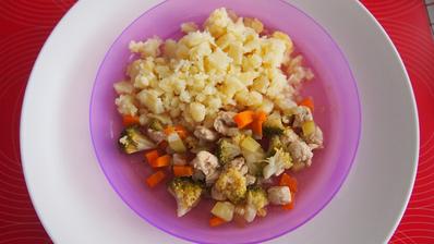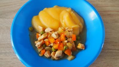 Prikrmovať som začala zeleninou urobenou na pare, prepasírovala som ju cez sitko keď bolo treba tak som pridala dojčensku vodu. Začala som mrkvou, zemiakom, petržlenom, karelábom až potom brokolica, karfiol, tekvica, cuketa, pór, sladký zemiak... Kuracie mäsko som pridala až po zavedení zeleniny na nejaky 10 deň. Každý nový druh zeleniny som podávala 3 dni. Neskôr som jednozložkové pyré nahradila viaczložkovým, kombinovala som zeleninu, ktorú sme už mali zavedenú.