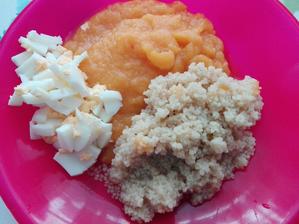 Mäso som nedávala každý deň a raz do týždňa som do jedla pridala varený vaječný žĺtok. Až keď mal malý 6,5 mesiaca.