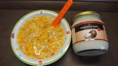 K zeleninovým príkrmom pridávam za studena lisovaný olej slnečnicový, olivový (niekde uvadzajú až od roka), tekvicový neskôr kokosový olej.