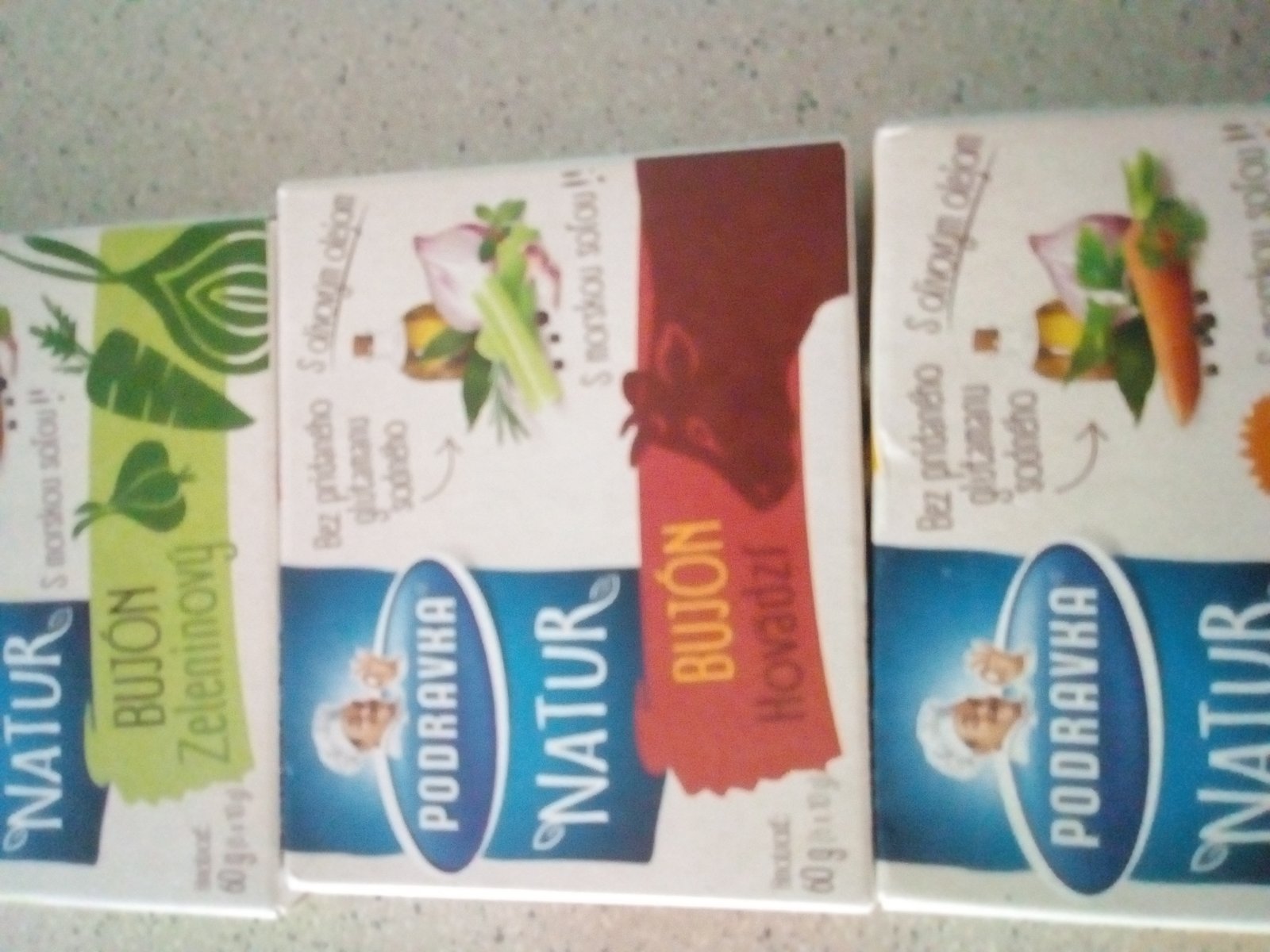 odporucam vsak stranku https://www.podravka.sk/vyrobky/ kde je vsetko popisane a porovnala som si vyrobky,ktore mam doma s popisom na nete a je to presne to 😉