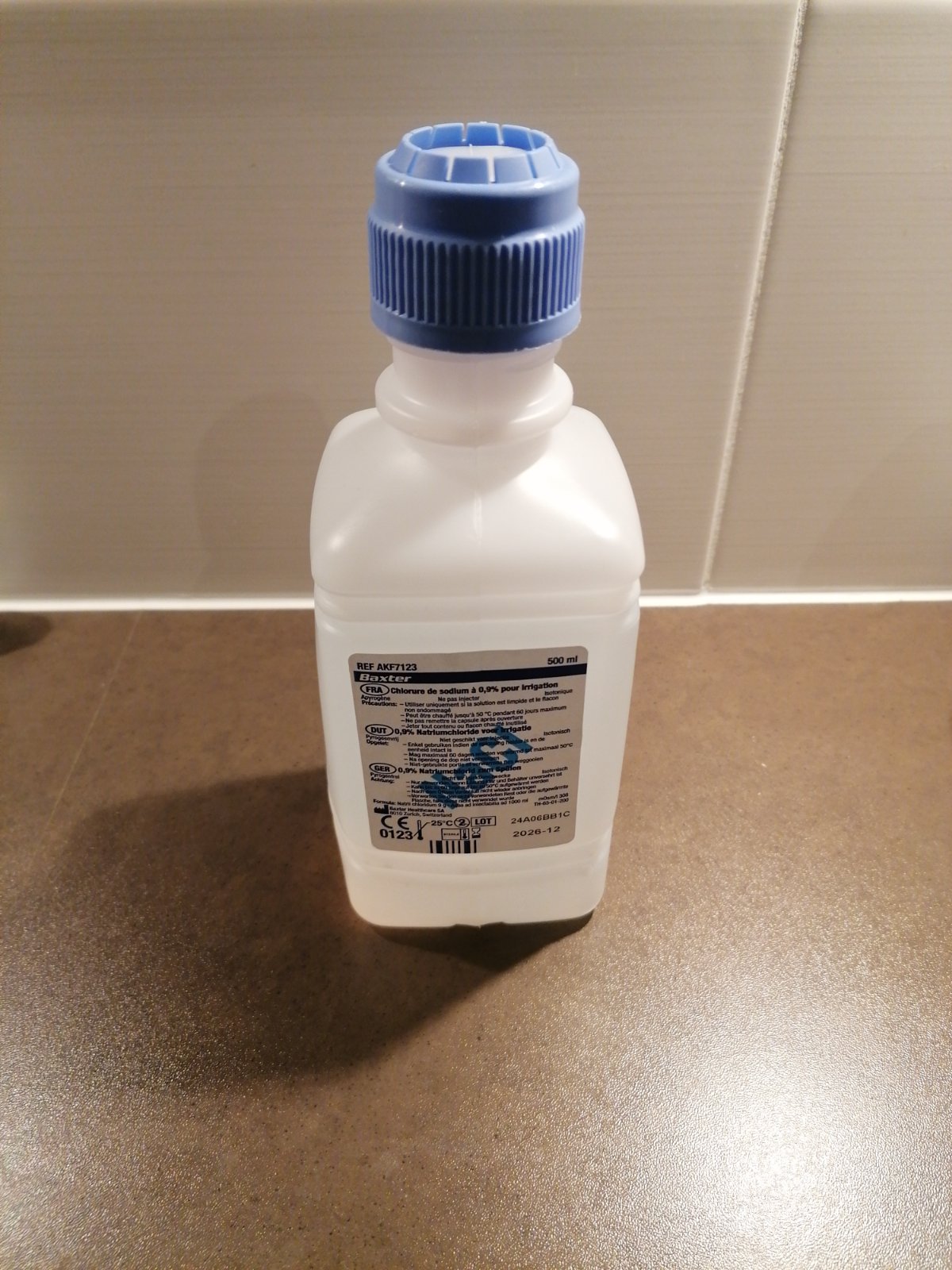 Moze byt infuzny slany roztok. Mozu byt ampulky so slanou vodou bezne kupis v lekarni a v zahranici v drogerii napr https://www.mall.sk/lekaren/omega-pharma-libena...