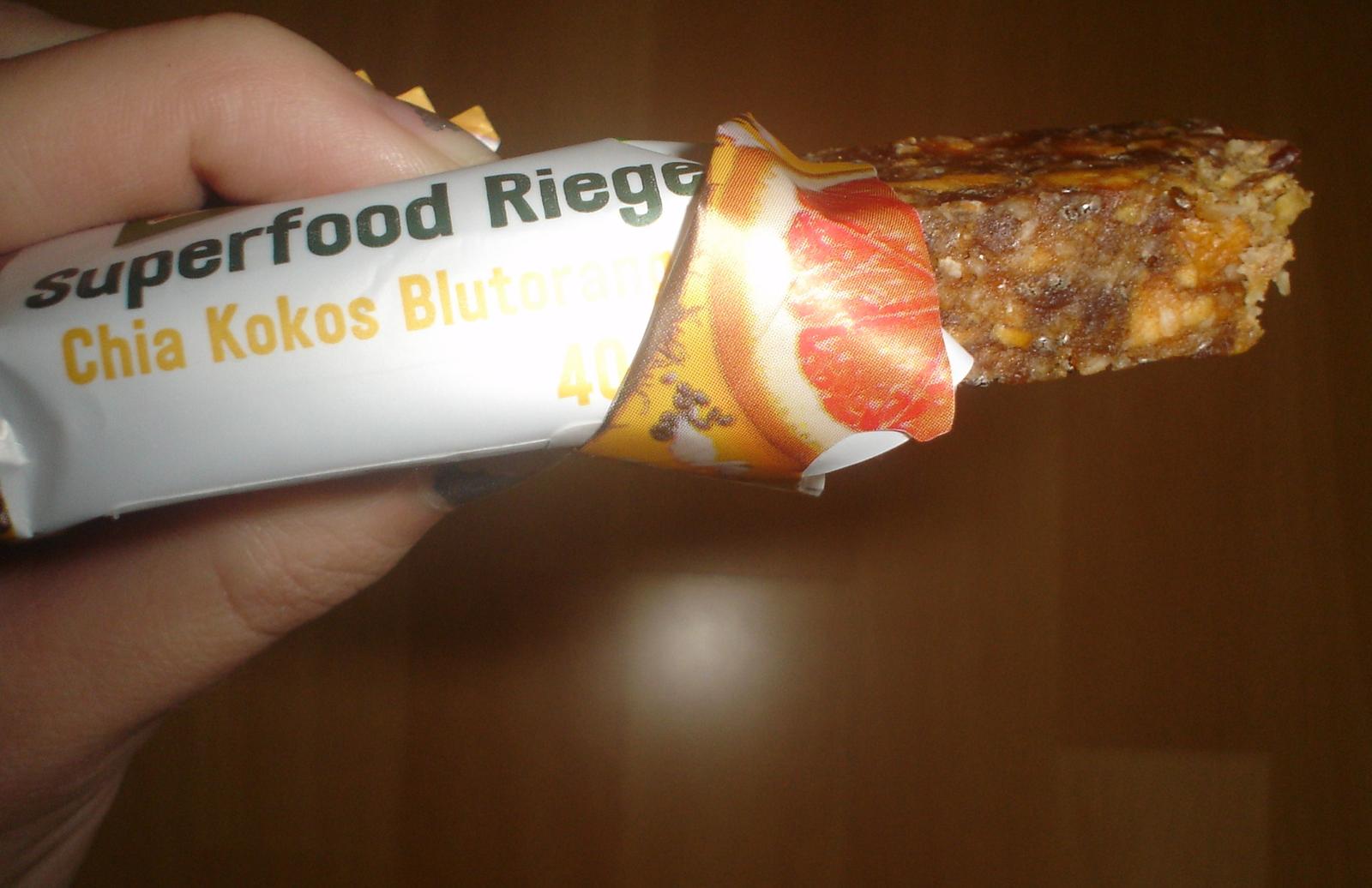 dmBio Superfood tyčinka chia, kokos a červený pomaranč – bio ďatľovo-ovocná tyčinka s kokosom a chia semiačkami. Táto 40gramová tyčinka nám s manželom veľmi nechutila. Ja osobne ďatle veľmi nemusím, ale určite milovníkom zdravej výživy bude chutiť a dodá potrebnú energiu.