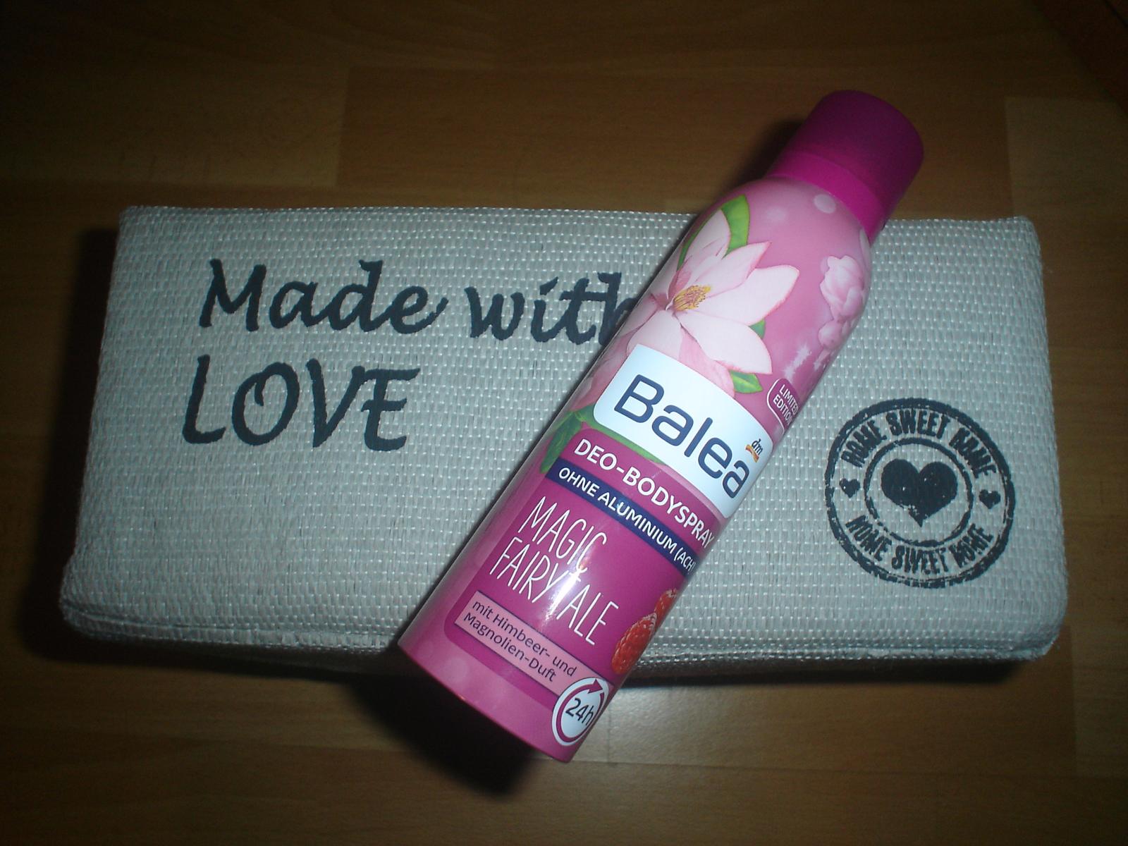 Balea deo telový sprej „Magic Fairytale“ – 24 hodinová deo ochrana s vôňou malín a magnólie. Vôňa ako stvorená na letné dni, je krásna, sladká ale žial 24hodin určite nevydrží. Je bez obsahu chlórhydrátu hliníka.