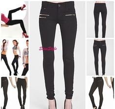 Čierne módne nohavice zdobené zipsami-Skladom!