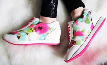 Kvetované tenisky, 2 farby, trocha vyvýšené cca 4cm, veľkostne sedia prefektne, ( miery v. 36/23cm, 37/23,5cm,38/24,5cm,39/25cm,40/25,5cm,41/26,5cm)