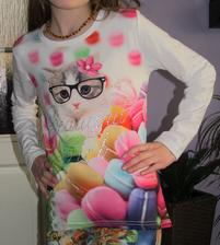 Nádherné tričenko s kryštálikmi " MAKRÓNKY " , 65%bavlna 30polyester% 5% elastan
