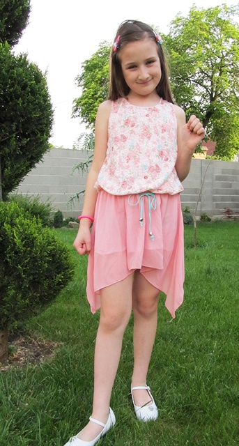 č.8 - 122/128..celková dlžka od ramena tá na dlhšia časť z boku 74cm, dlžka vzadu v strred od krku 59cm, šírka v podpazuší resp.hrudník 35cm, pás v kľude 26cm (gumička veľa povolí ešte nie je silná)