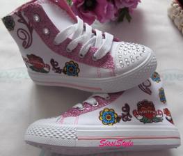 Skladom - Dievčenské biele tenisky s motýlikom a nádherné kotníčkové tenisky s kamienkami!