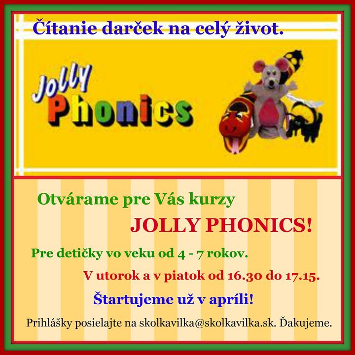 Jolly Phonics poskytuje program pre výučbu zručností čítania a písania v anglickom jazyku. S Jolly Phonics, sa deti (od 3 do 8 rokov) učia nielen zvuky anglickej abecedy (26 znakov), ale všetky zvuky, ktoré angličtina má, t.j. 42 zvukov, ako aj to, ako sa tieto zvuky píšu. S týmito vedomosťami, pokračujú deti spájaním zvukov do slov, a začínajú čítať. Zároveň si precvičujú písanie počúvaním zvukov hovoreného slova a identifikujú písmená, ktoré zodpovedajú týmto zvukom.