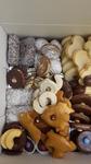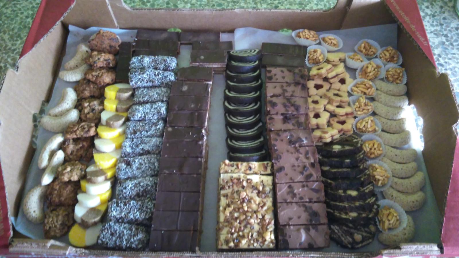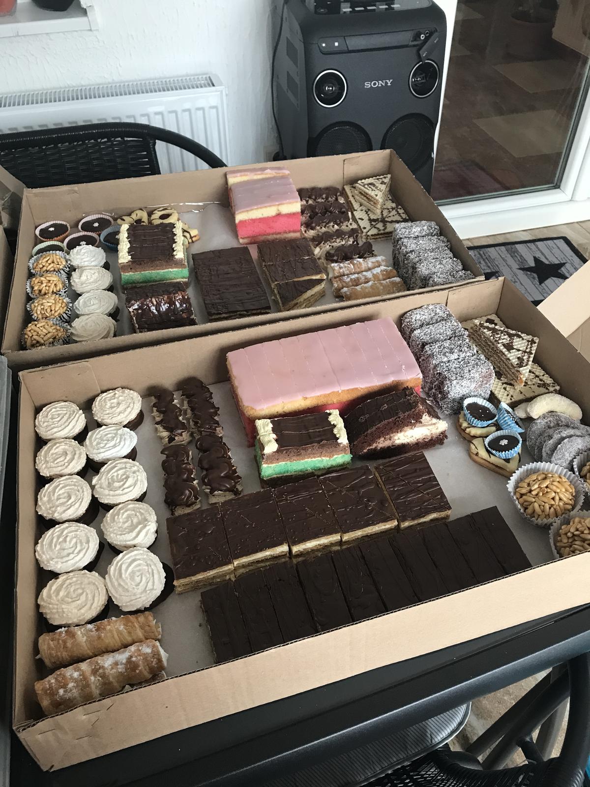 Nie je na foto vsetko,fotila som uz po rozdeleni ked sme niesli svokrovcom...ale bolo to 2,5 kg sucheho peciva,1 kg kosickov,1kg parizskych roztekov. cena bola 58 e.Predtym som si chodila do obce Bab jednej co som ju nasla na fb po to a tento rok som to zmenila a na fb som si nasla na stranke susedska obziva a sla som si po to do obce Cataj 🙂