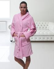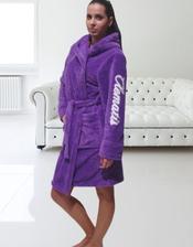Dámsky huňatý župan s kapucňou. Príjemný na dotyk a veľmi hrejivý. Župan má dve vrecká a vyšívané logo "Clematis" na jednom rukáve vo farbách, ktoré ladí k farbe županu.