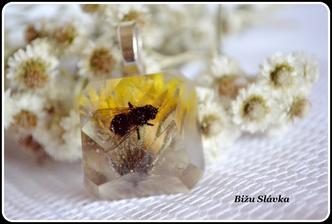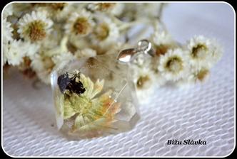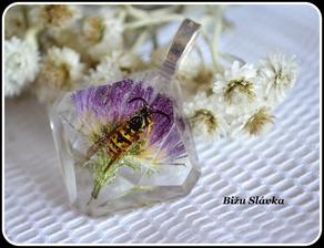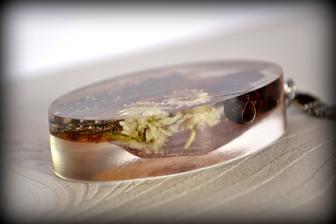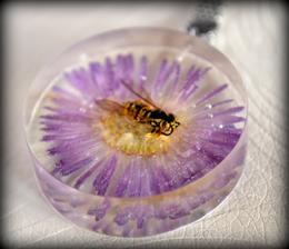 Moja autorská tvorba. Odliatky zo živice, v ktorých sú zaliate rôzne organické materiály, ako kvety a listy či muchy, osy a podobne. Každý kus je originál.