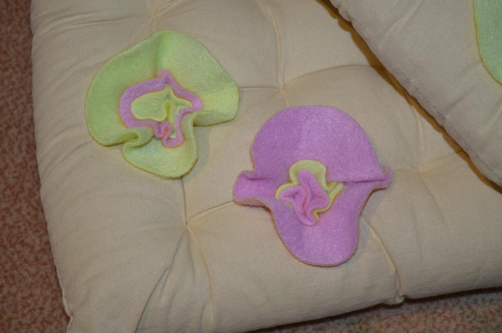 kvetinky boli z filcu - kruhy v 3 veľkostiach stiahnuté jedným stehom