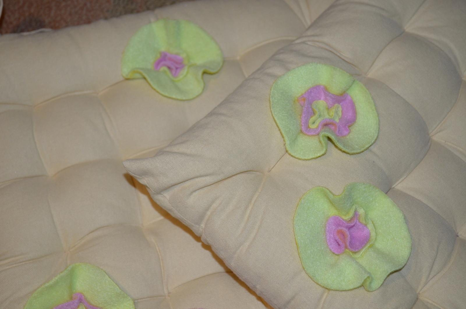 kvetinky boli z filcu - kruhy v 3 veľkostiach stiahnuté jedným stehom