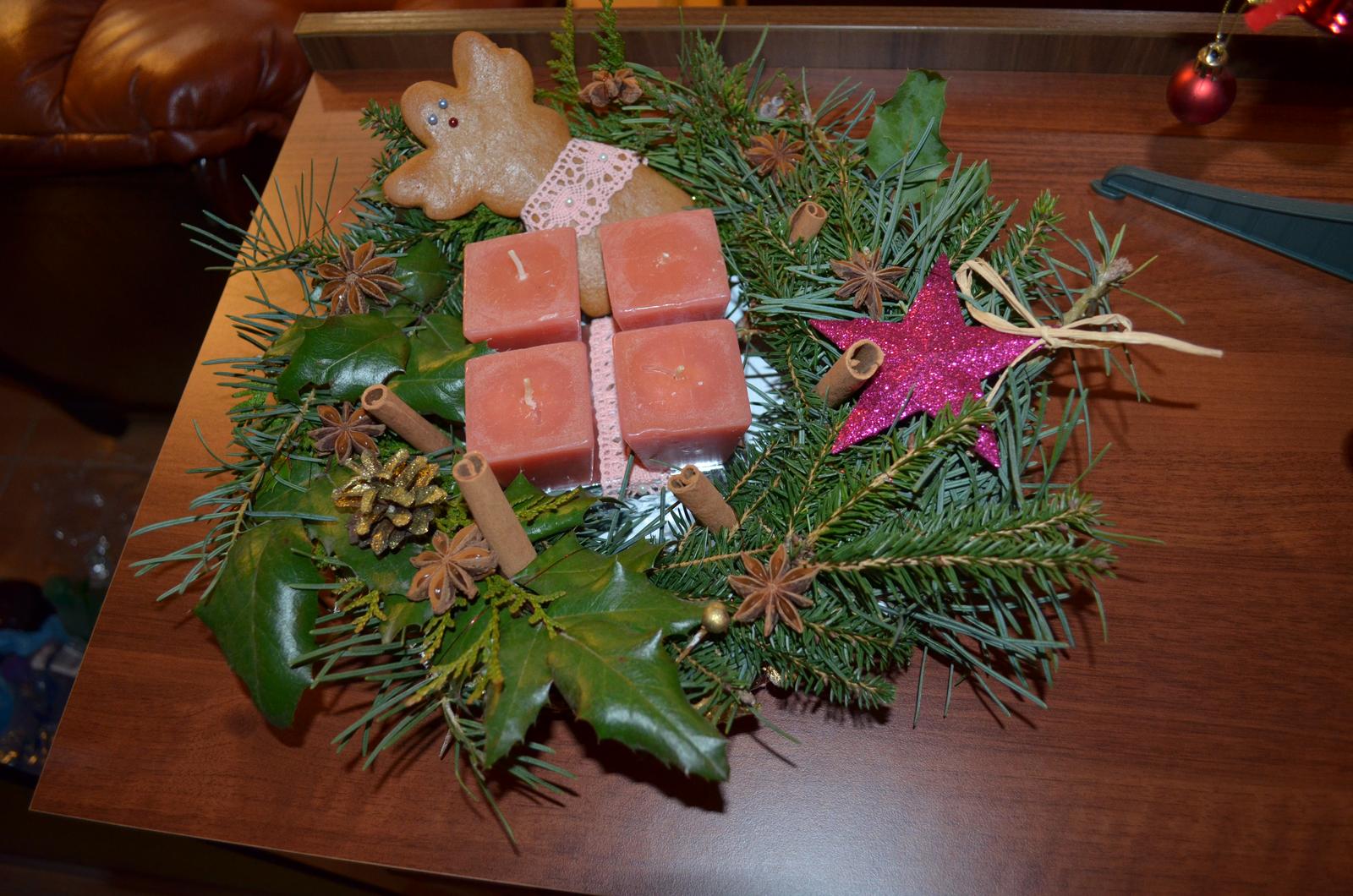 adventný veniec s perníčkom od Gibi - živá zeleň - škorica - badián a krajka