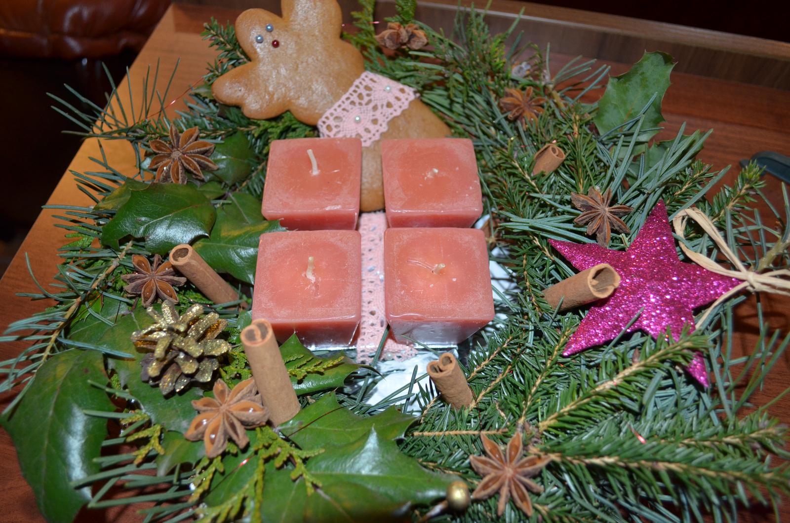 adventný veniec so šiškou pomaľovanou zlatým akrylom od mojej Xenky
