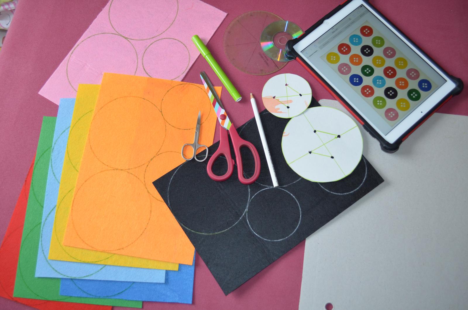pomôcky na výrobu gombíkov na stromček