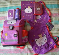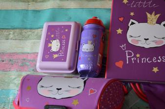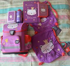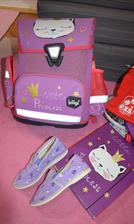 od babky Márii: aktovka, peračník, dosky na zošity, vrecka na tepláky a hygienické potreby, fľaša na pitie a desiatový box