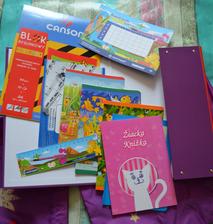 dokúpili sme zatiaľ : zošity, vrecúška na desiatu, vrecúško na výtvarné pomôcky a zásteru na výtvarnú výchovu, papučky - prezuvky