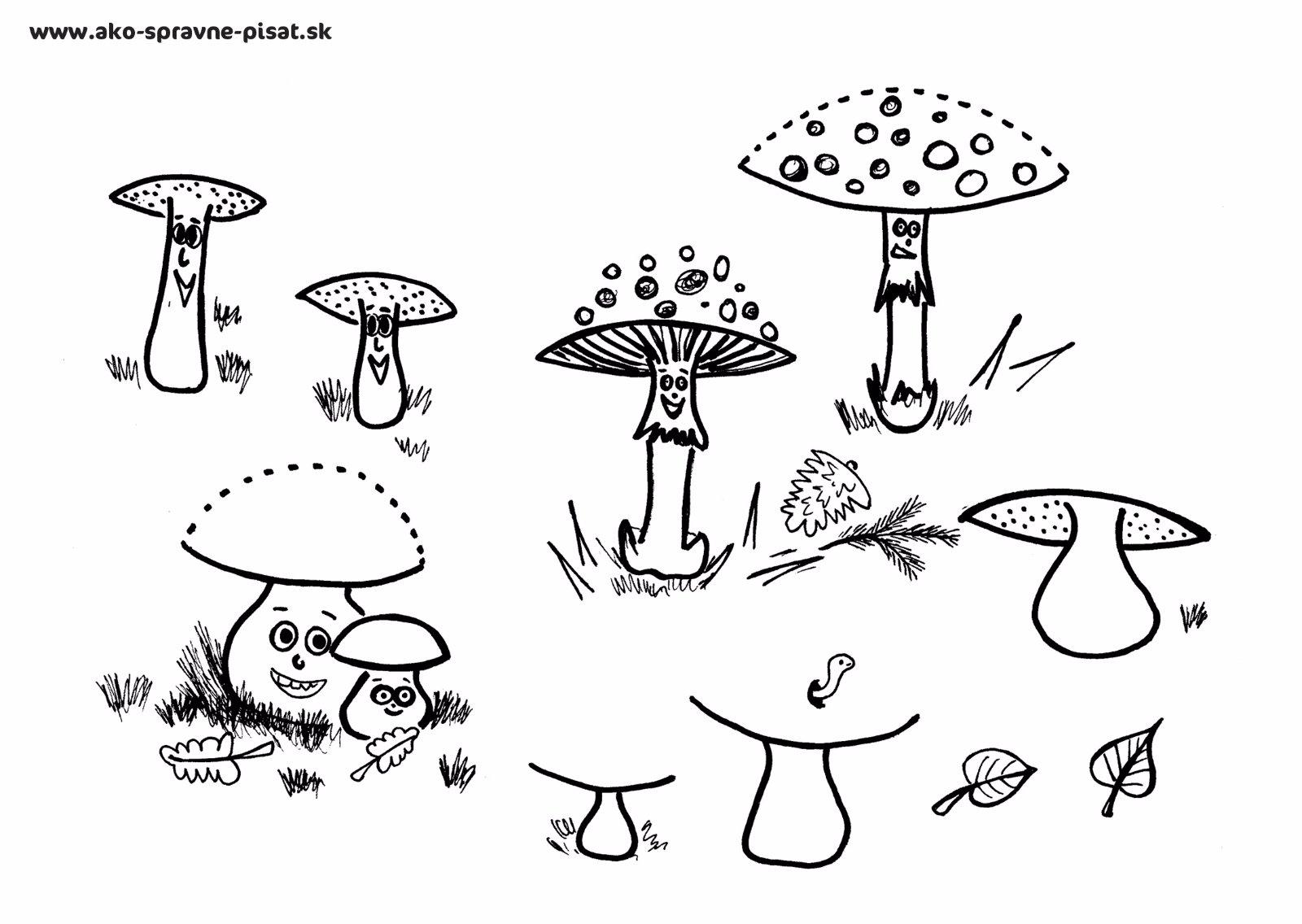 Hríbiky - Dokresli hríbikom klobúčiky s pomocou oblúčikov podľa predlohy.