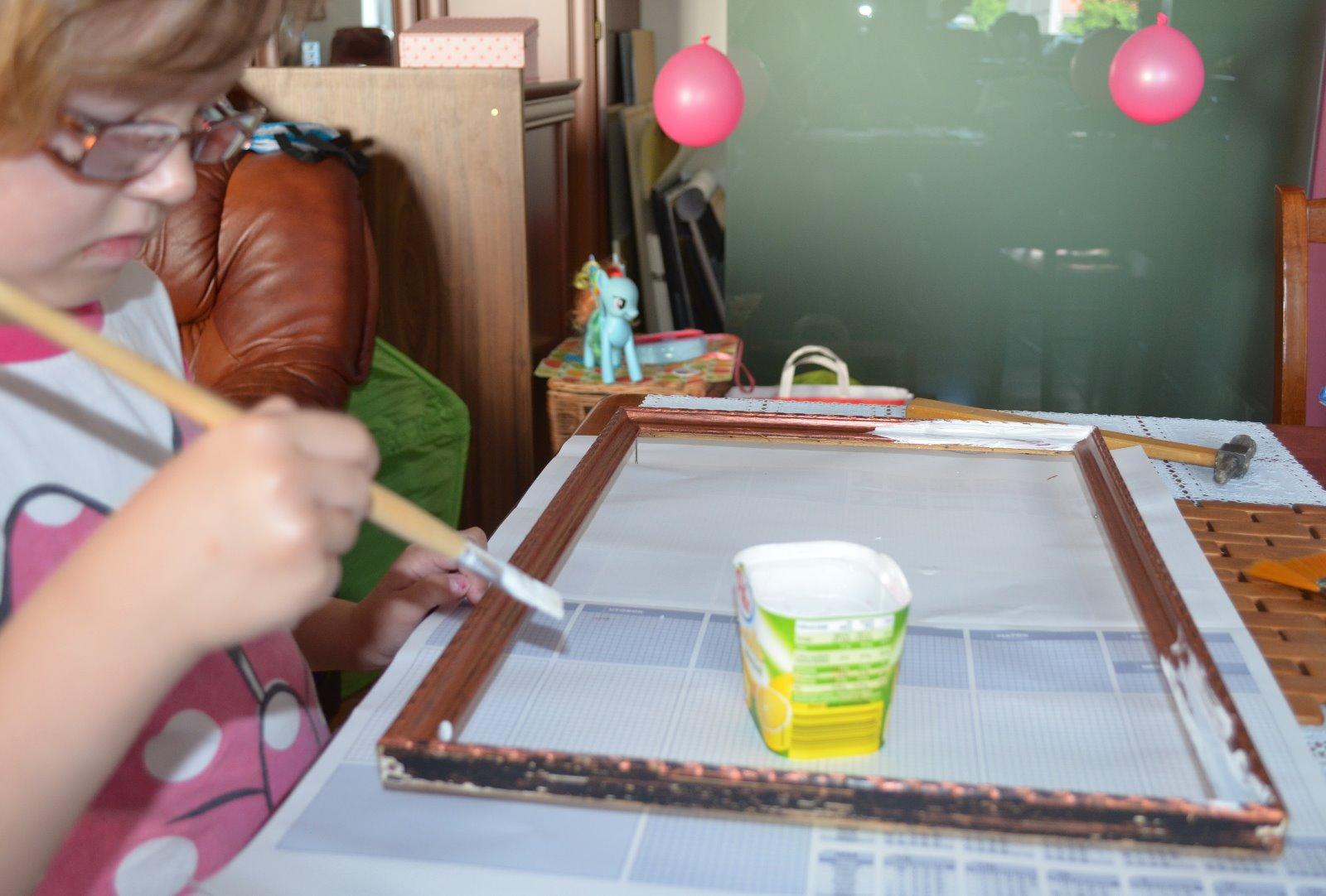 po návrate som našla starý rám a Xenky ho repasuje :-) aby si doň mohla zarámovať diplom 3.6.2017´