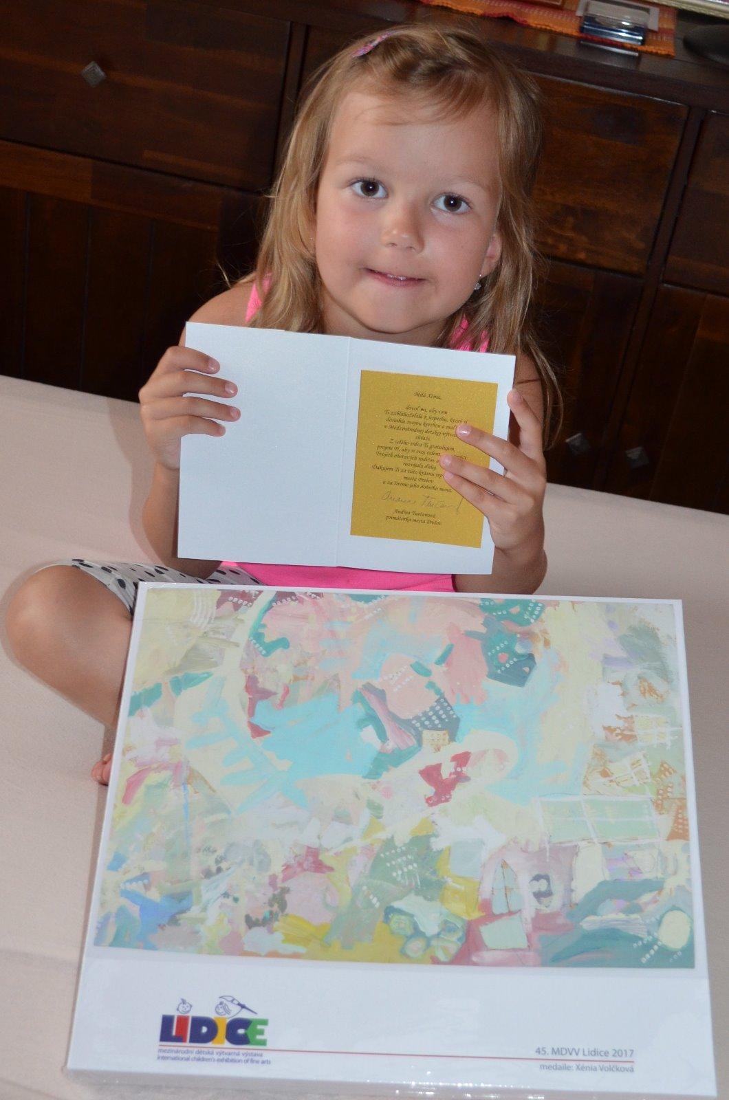 Xenky s pozdravom od Pani primátorky Ing. A. Turčanovej a fotokópiou svojho dielka, ktoré jej venovala Lidická galéria v deň odovzdávania ocenení MDVV 2017´
