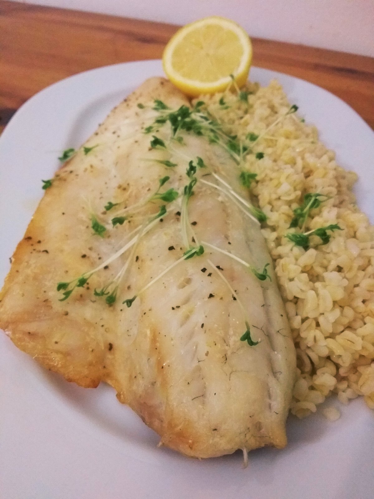 Zubáč citrónová šťava, maslo soľ korenie čierne mleté a bulgur k tomu 😊