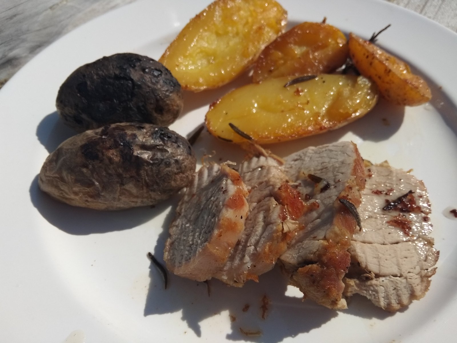 Panenka s rozmarínom, opekané zemiaky a zemiaky z pahreby