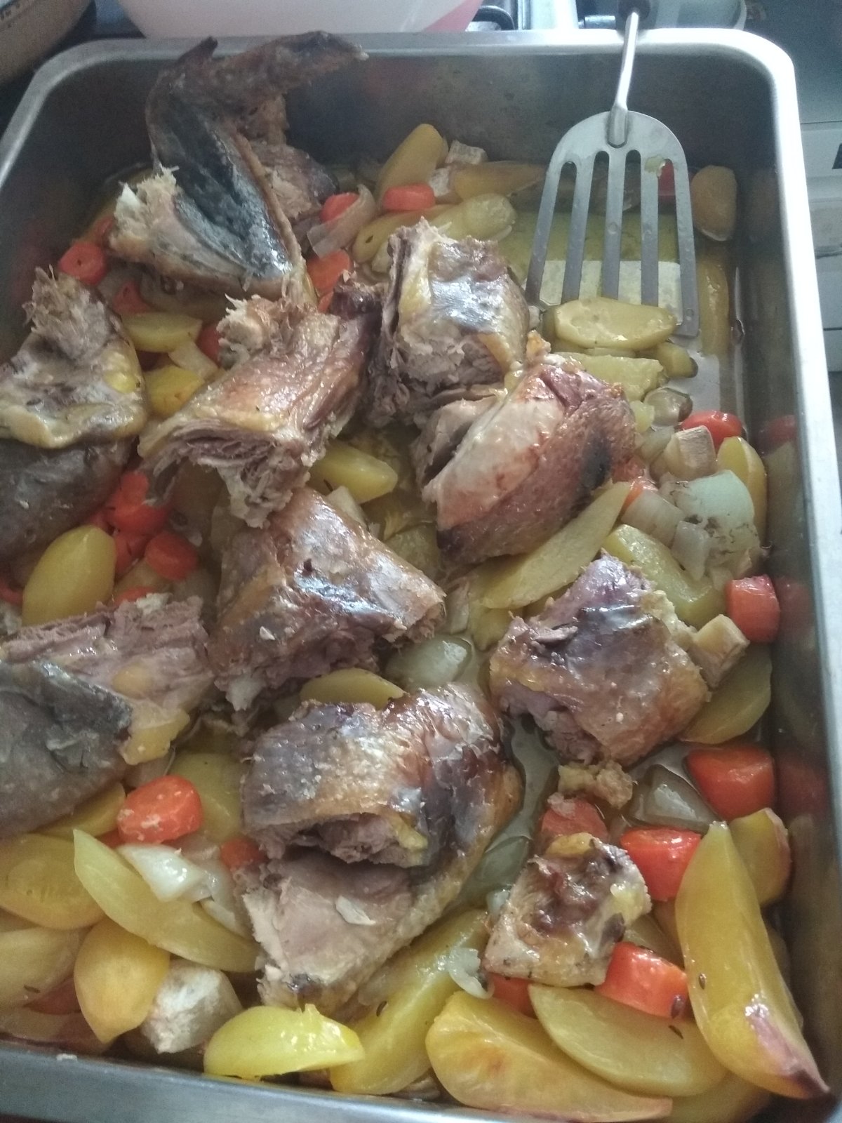 Perlička pečená na zemiakoch a zelenine