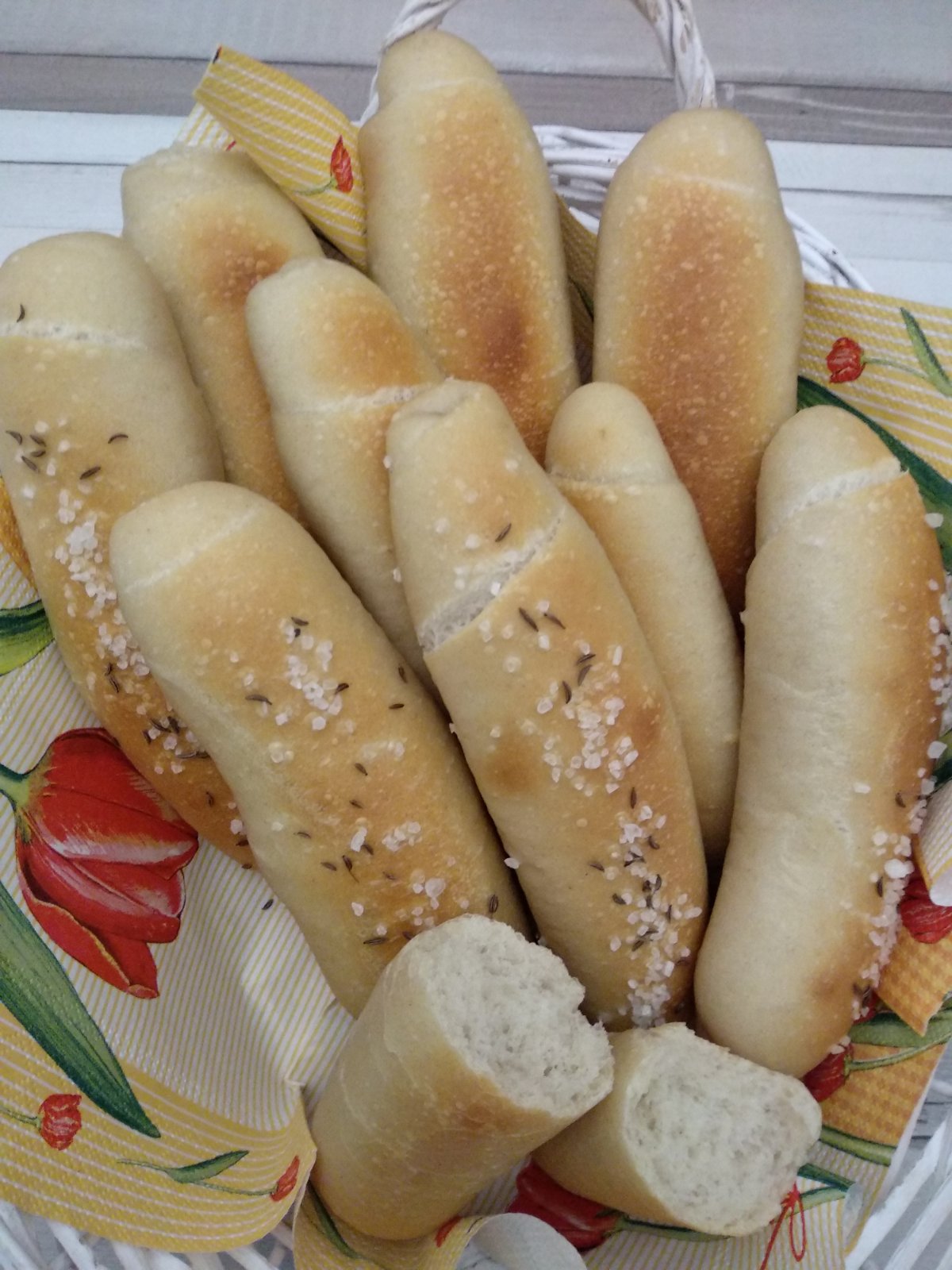 Mixérom vymiesila, nechala 3 hodiny kvasiť, navážila 80g bochníky. Cca 10 minút oddychovali, vytvarovala som rohlíky, postriekala vodou, dala pod igelit a na noc na balkón.