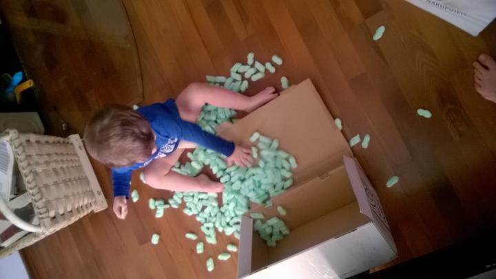 Prvé čo som skontrolovala či je tam všetko ;) a môj drobec vzal hneď najkrajše voňajúci sáčok a kričal ,,mojeeeé mojeéé,, ale ked zbadal tú výplň krabice no neodolal 😁 zberať budú aj susedia 😁