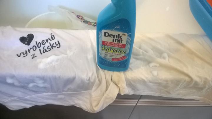 Svedomito sa pripravujeme na príchod nášho druhého potomka. Bolo by neekonomické kupovať novú výbavičku a tak sme sa rozhodli najprv pretriediť tú po prvom synčekovi. Patrím k matkám ktoré neveria veľmi v zázraky odstraňovačov škvŕn ale tento OXI POWER od spoločnosti DENK MIT mi predsa len urobil radosť. Bodynká s fliačikom sme najprv postriekali podľa návodu a neskôr dali prať do práčky s UNIVERZÁLNYM PRACÍM PROSTRIEDKOM značky DENK MIT ultra sensitive samozrejme aj s ďalšou kopou prádla, v ktorej bolo aj moje obľúbené tričko ,,vyrobené z lásky,, to sa mi podarilo poriadne zamastiť pri vyprážaní fašírok.