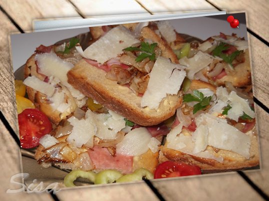 Zapečený chlebík so šunkou a parmezánom,,,http://www.hrncekoverecepty.sk/