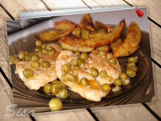 Kuracie prsia na hrášku s opekanými zemiakmi,,,http://www.hrncekoverecepty.sk/2016/07/kuracie-prsia-na-hrasku-s-opekanymi.html