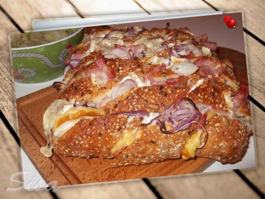 Zapečený chlebík so syrom a slaninou: