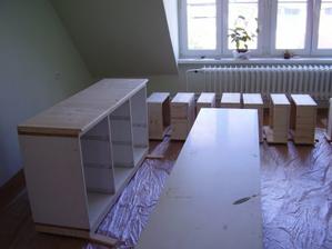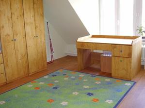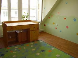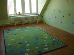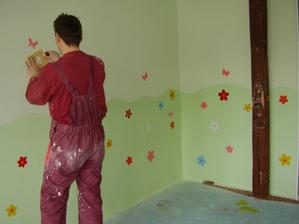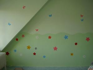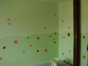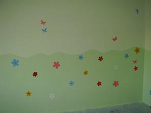 Tak takto chystame detsku izbicku pre nasu bambulku. Zatial mame len vymalovane. Kvetinky su len na jednej stene. Na opacnej budu skrine. 🙂 Farbu sme zvolili - strop biela a steny bledunko zelene + trochu zelensia travicka.