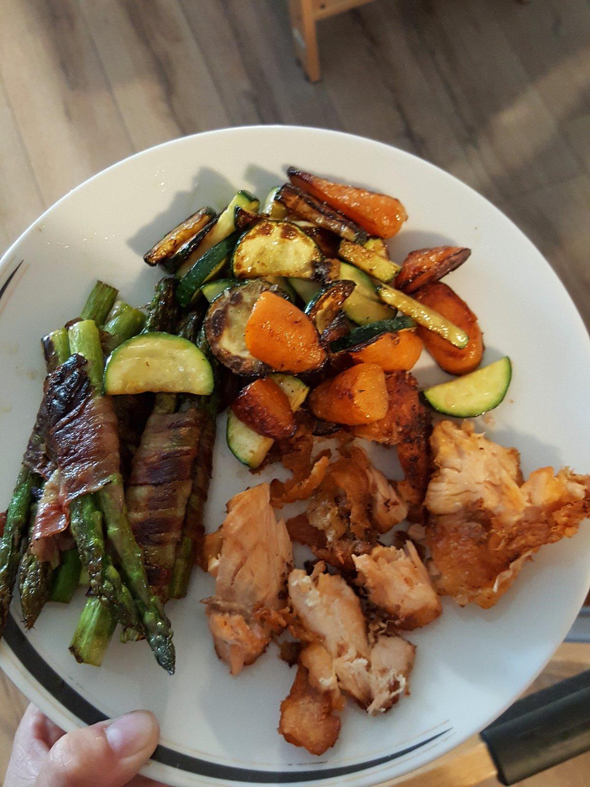 grilovany losos s grilovanou zeleninou