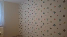 @miska1022 ahoj, prepáč že až teraz, robili sme si sami a musím povedať že to bola najhoršia tapeta s akou sme robili... Hviezdičky nesedeli, museli sme ju naťahovať a prispôsobovať. Kedže je papierová treba dať pozor lebo ma tendenciu trhať sa a všetky nerovnosti na stene vidieť :/ asi som ta nepotešila. Ja som dlho hľadala tapetu s hviezdičkami a táto bola presne podľa mojich predstav no škoda že je nič moc kvality. Už teraz rozmýšľam co na stenu malej keď sa prestahujeme a asi budem len peciatkovat alebo si z tejto povystrihujem tie hviezdy a polepim ich každú zvlášť ;)