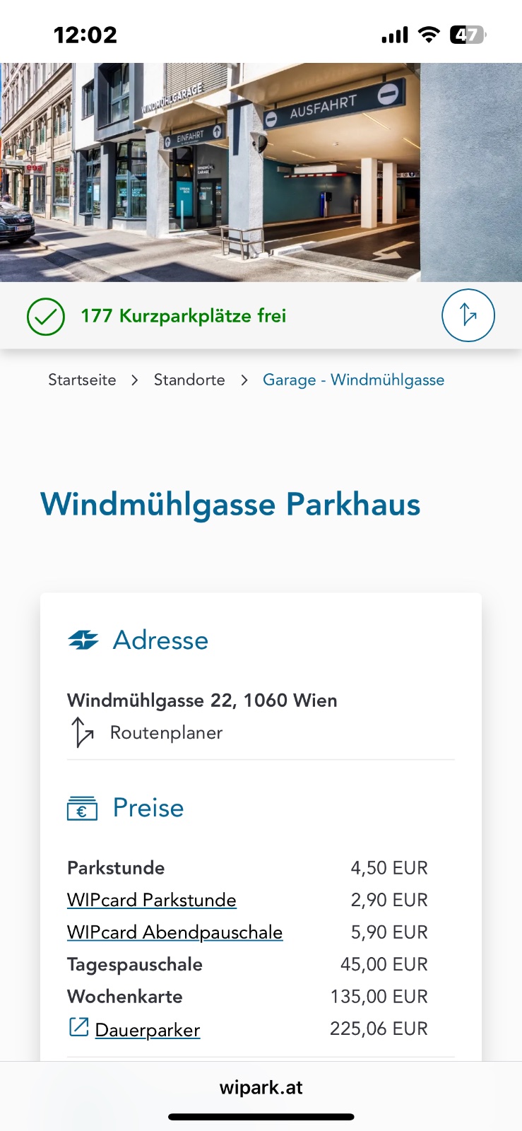 Toto mas najblizsie ku Haus des Meeres, so vstupenkou stoji hodina 2.90, ak idete cez vikend, mozno budete mat stastie aj niekde na ulici, len velky pozor na tabule, pre mna je naj parkovanie na P+R parkoviskach kde stoji den 4.40, len sa uz treba potom presunut mhd tam kde potrebujes.