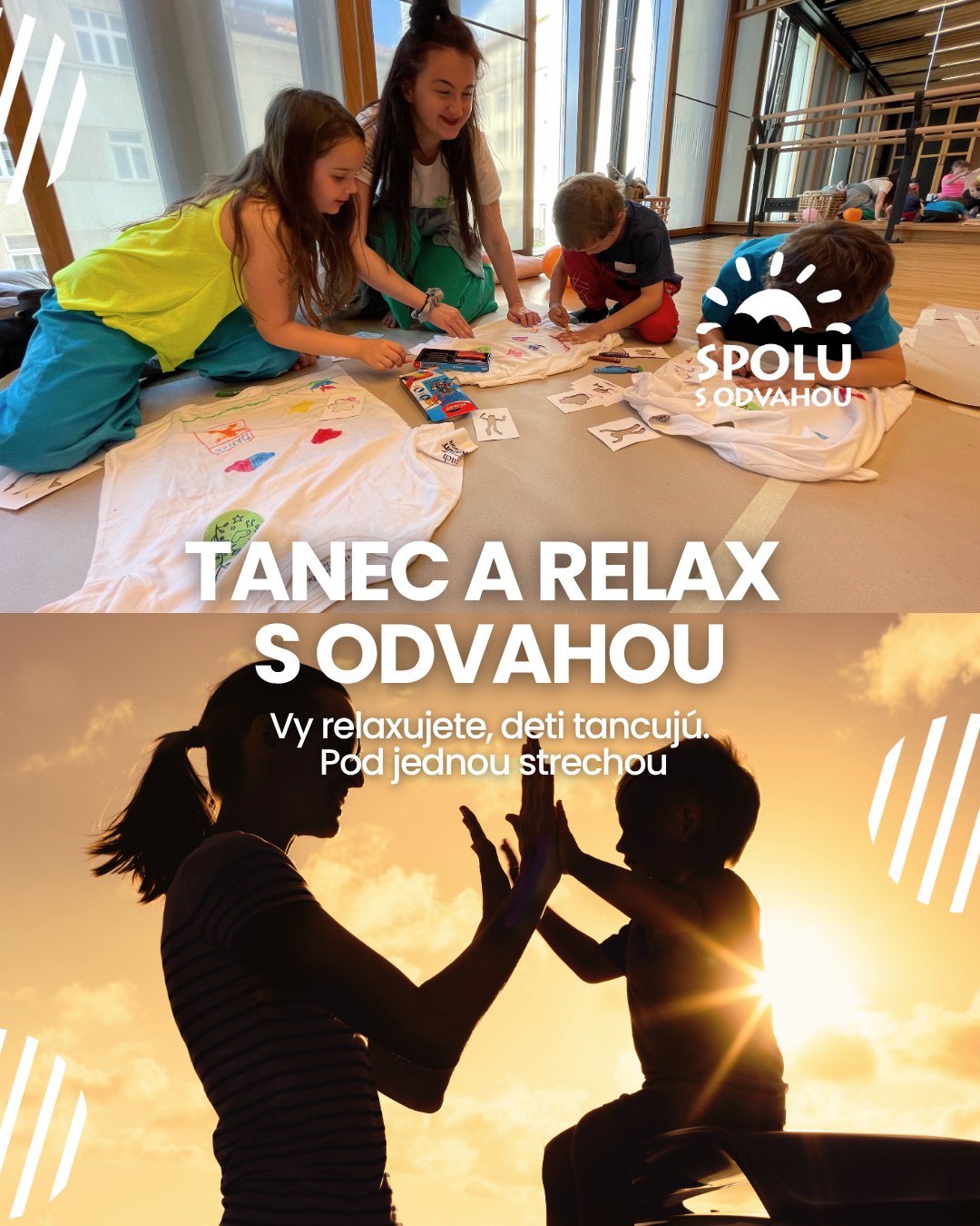 🧑🩰Kým sa vaše deti pod vedením našich inštruktorov a dobrovoľníkov rozhýbu v rytme tanca a obľúbených hier Spolu s odvahou, vy môžete v susednej sále na chvíľu vydýchnuť. Program pre deti citlivo prispôsobujeme ich individuálnym možnostiam, aby si radosť z pohybu odniesol naozaj každý bez ohľadu na diagnózu.