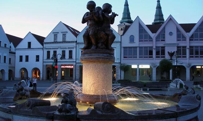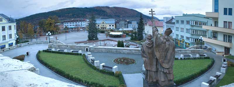 V strede námestia sa nachádza Mariánsky stĺp s Immaculatou, barokovou sochou nepoškvrnenej Panny Márie. Tento stĺp postavili roku 1738 na počesť úspešného zakončenia procesu rekatolizácie v meste. V rámci rekonštrukcie námestia boli obnovené dve historické studne, ktoré spolu s modernou fontánou patria k atrakciám námestia. Na námestí je viacero vzácnych stavieb. Jednou z nich je reprezentačná barokovo-secesná budova Starej radnice, ktorá stojí na mieste pôvodného radného domu. Ten sa spomína v mestských listinách zo 16. Storočia. Dnešná podoba radnice je z roku 1890, rekonštrukcia budovy bola ukončená v roku 1993. Na radnici sídli primátor mesta Ján Slota, sú tu reprezentačné priestory, v ktorých zasadá mestské zastupiteľstvo a konajú sa tu aj sobášne obrady. Zaujímavosťou je zvonkohra na čelnej strane budovy. Na západnej strane námestia vyniká dvojvežový barokový kostol sv. Pavla apoštola z roku 1750. Veže sú vysoké 32 metrov. Vzácny je barokový hlavný oltár s obrazom sv. Pavla – patróna kostola. Autorom obrazu je významný slovenský maliar 19. storočia J. B. Klemens.