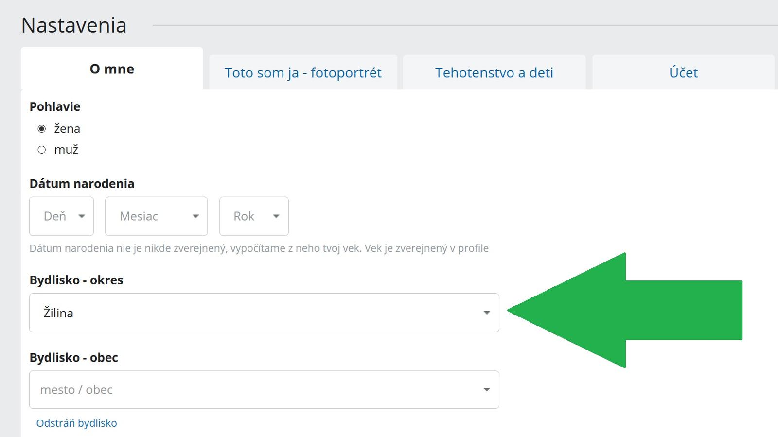 Zvoľ svoje bydlisko, kde by mohol kupujúci nakúpiť tvoj tovar.