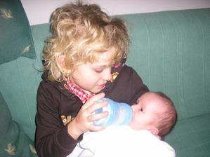 no zdanie klame..syn len s príkazom, ale dcerka tá je super opatrovateľka..češe ich , parádi a tak a oni ju tak počúvajú...