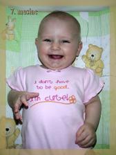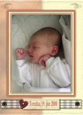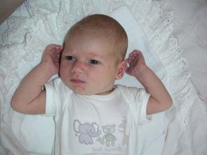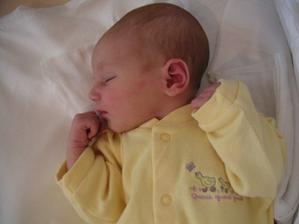 Maminku som veeelmi potrapila :o), cely porod prebiehal od osmej vecer do 09.10 rana, ale uz sme na to zle zabudli a ucime sa na seba. Maminka s tatinkom ma velmi lubia a ja sa ich snazim posluchat :o). Som maly smejko, velmi zvedave a radostne dietatko. Vsetkym naokolo robim velku radost.
