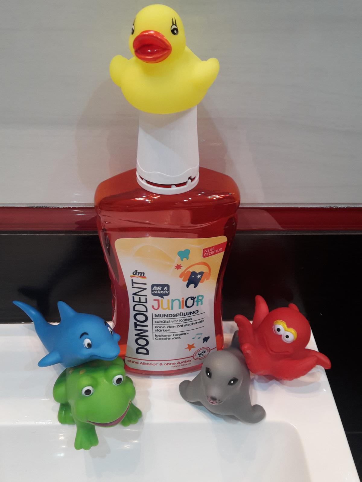12. Dontodent Junior ústna voda – vhodná pre deti od 6 rokov. Bez obsahu alkoholu a bez pridaného cukru, vhodná i pre nositeľov zubných strojčekov. Keďže nemám dieťa nad 6rokov, túto ústnu vodu som otestovala ja. JA veľká milovníčka sladkého som ale po tejto ústnej vode cítila na jazyku niečo veľmi vtieravo sladké. Neviem čo by povedali na to deti - no za mňa dávam Nie. Ústnu vodu som posunula kolegynke, ktorá má deti nad 6rokov. Ako plus dávam že táto voda obsahuje fluorid sodný 😉 a ešte ma pri nej teda pobavil preklad do slovenčiny, resp. možno fakt u nás má uzáver len 10ml 😀
