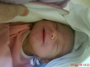Ahojte a som na svete.Volám sa Sabínka,narodila som sa 22.04.09,10:57.Moje miery sú 3009g a 51cm.Všetci majú so mňa velkú radosť