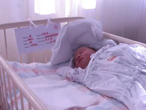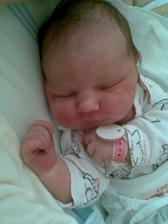 Narodila som sa 9.10.2010 o 3:00 ráno s mierami 4060g a 52cm. Nechala som sa prosiť týždeň po termíne a celé to trvalo od jednej poobede až do rána. Kvôli zelenej plodovej vode som v nemocnici strávila celý týždeň, ale antibiotiká pomohli a už som v poriadku 🙂