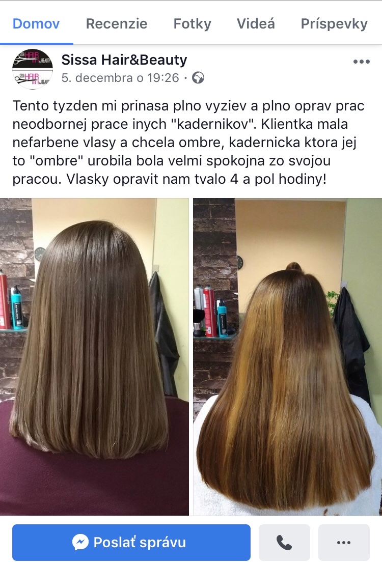 Úplne som z toho nešťastná! Na vlasy som si dávala celý život veľmi podobnú mojej hnedú farbu, len pre odlesky...Po rokoch som chcela zmenu a našla som si kupón na zľave dňa - kaderníctvo kde blízko bývam (nemala som referencie, kolegyne majú kaderníčky mimo BA a na stánke mali 9,8%). Hneď ako mi to spravila, sa mi to zdalo veľmi svetlé :( no vlasy mi hneď natočila a nevidela som výsledok na rovných...Keď som prišla domov, skoro som odpadla! Kupón stál 24,90€ a doplácala som 20€ za presvetlené. Ako by som mala teda postupovať? Ani vo sne by som si nepomyslela, že to bude takto zle vyzerať po vyrovnaní vlasov :(